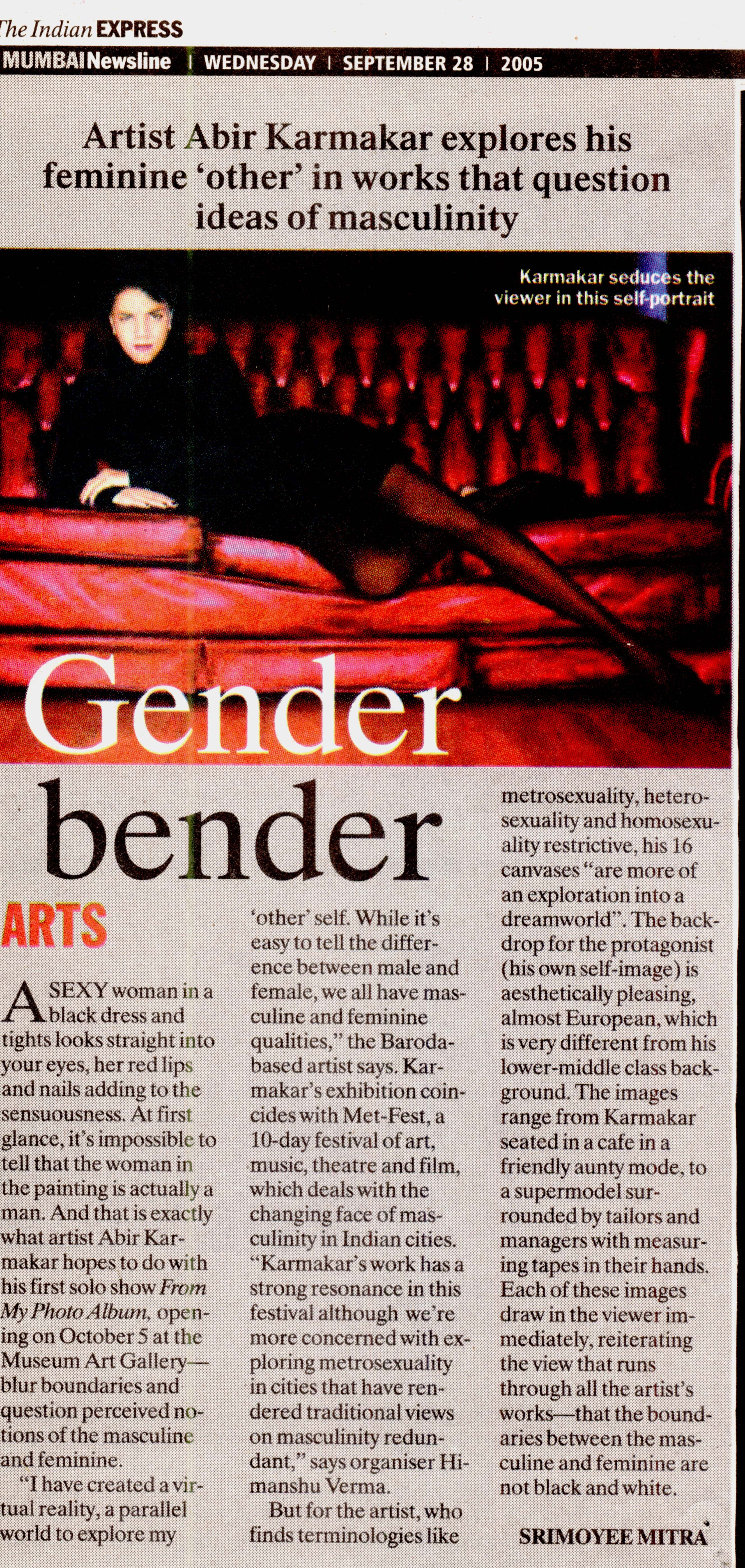A SEXY woman in a black dress and tights looks straight into your eyes, her red lips and nails adding to the sensuousness. At first glance, it s impossible to tell that the woman in the painting is actually a man. And that is exactly what artist Abir Kar-makar hopes to do with his first solo show From My Photo Album, opening on October S at the Museum Art Gallery blur boundaries and question perceived notions of the masculine and feminine.